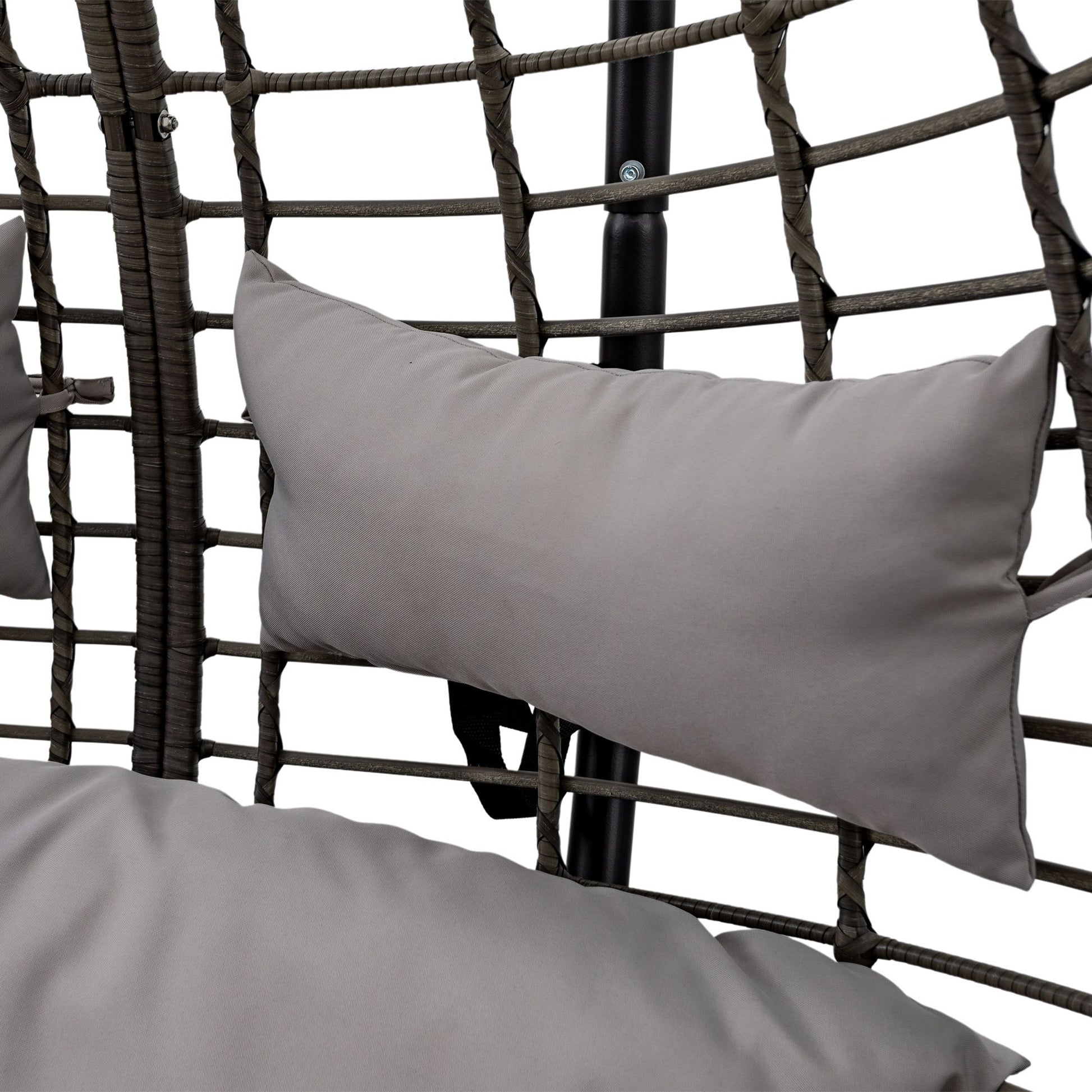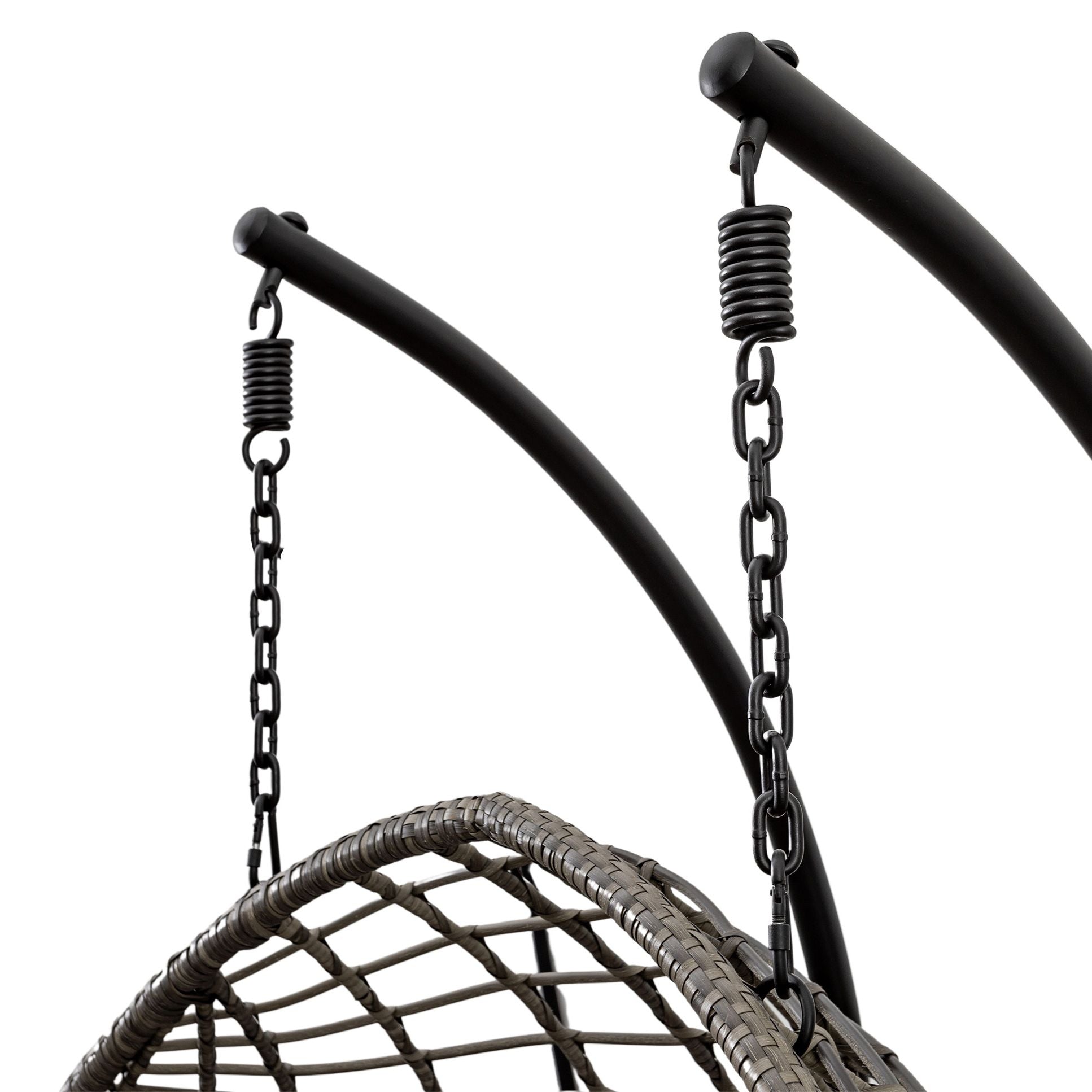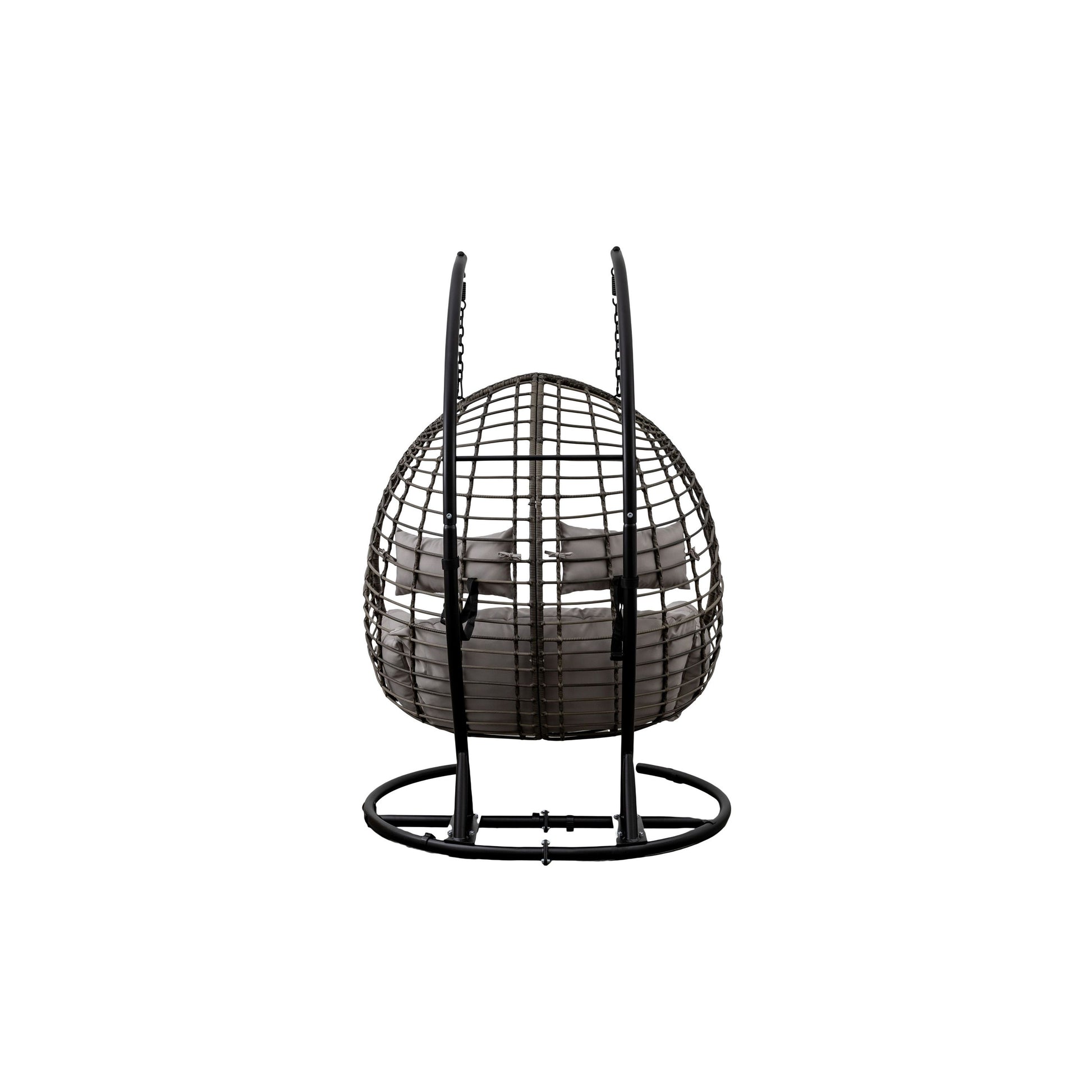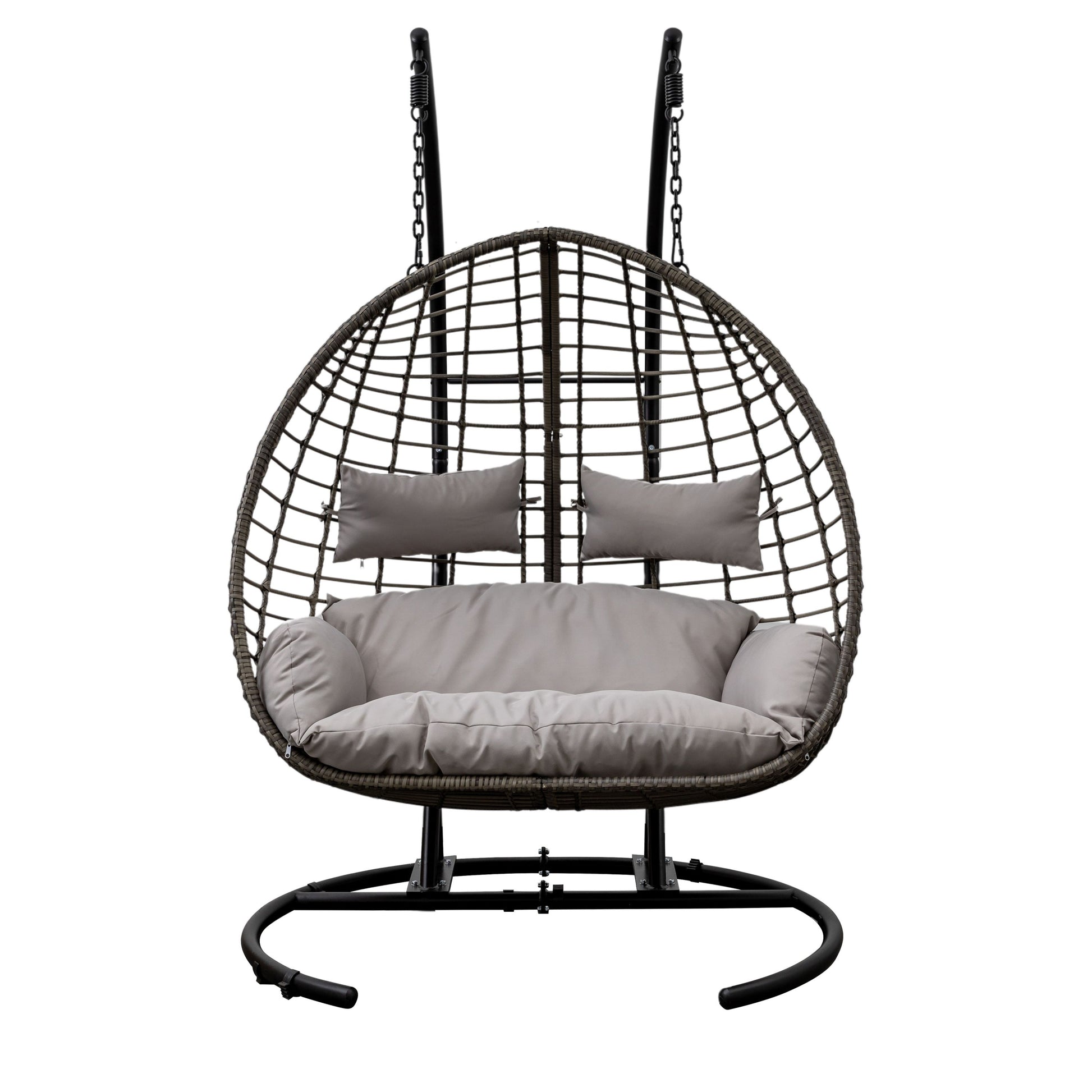 Relax in style in this incredibly comfortable 2-seater hanging chair, which is ideal for two, or one if you're feeling indulgent and want to curl up in it. Crafted from rattan with luxuriously deep showerproof cushions, it is perfect for balconies, patios and poolside spaces, and even looks great indoors. The frame, which can be dis-assembled for easier storage over winter, is power coated steel. A single seater version is also available.