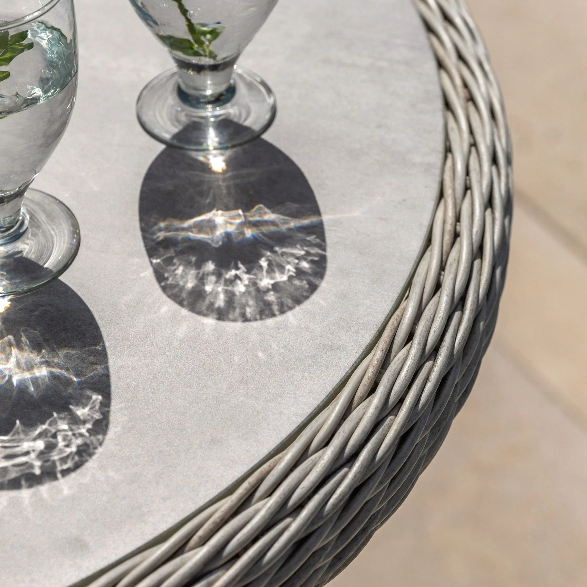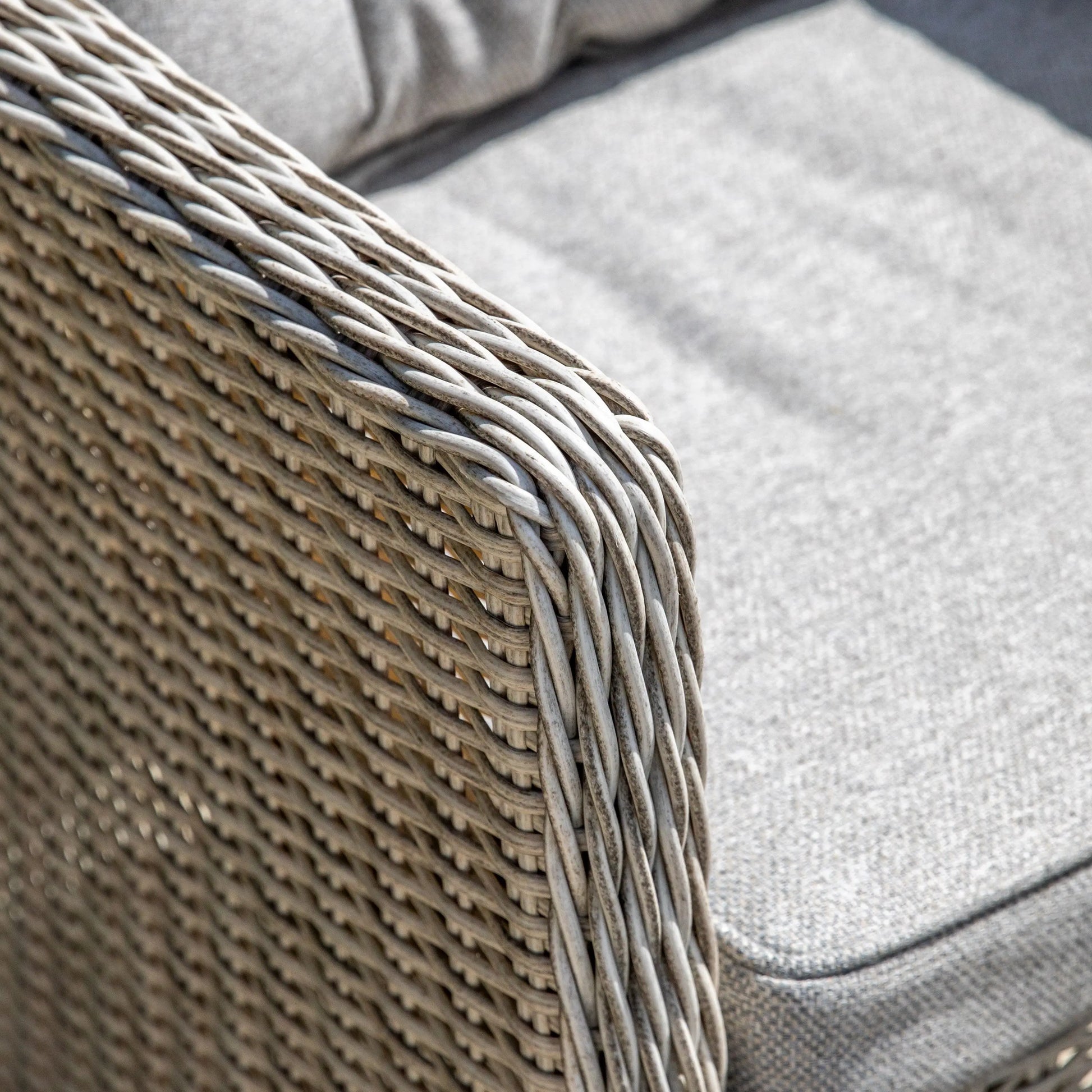Made with weather resistant woven polyrattan this chic and comfortable corner sofa, 2 cushion topped benches and ceramic glass topped dining table is the perfect addition to your outdoor dining space. The stand out feature of this set is the built in charcoal fire pit dining table, inclosed by a black metal grill this fire pit will add extra warmth on chilly evenings allowing you to extend your time and enjoyment outdoors.